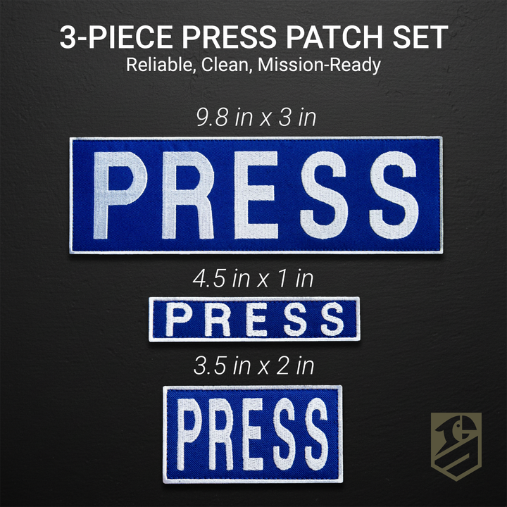 3Pcs Press Patch Set – Blue Embroidered Patches for Press Vest & Tactical Gear (Small & Large Sizes)
