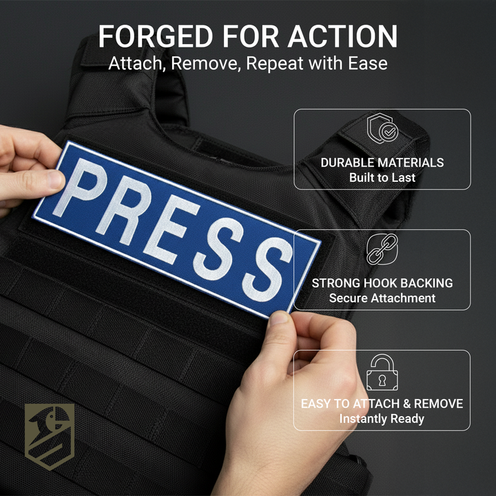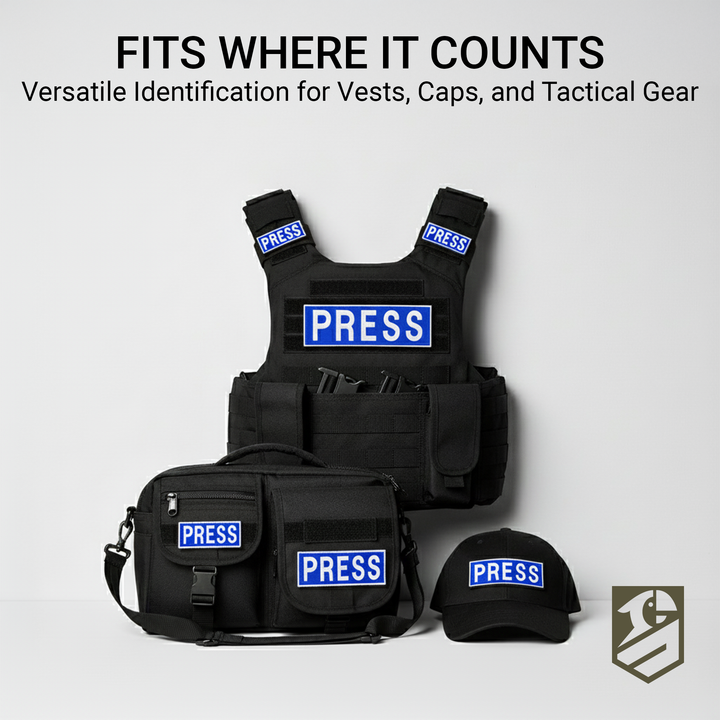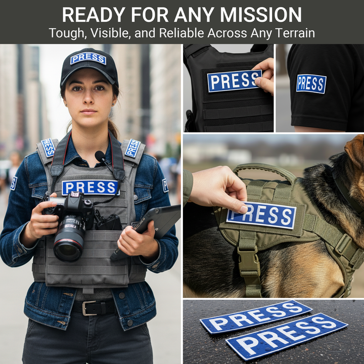 These patches are trusted by field journalists, photojournalists, and independent reporters who need clear visibility and professional identification. The sturdy construction ensures they hold up under demanding outdoor and combat conditions while maintaining sharp color contrast and clean lettering. Hook-and-loop fasteners make switching between press vests, backpacks, or tactical body armor fast and reliable.