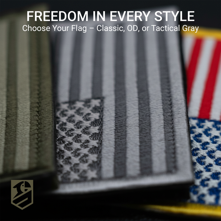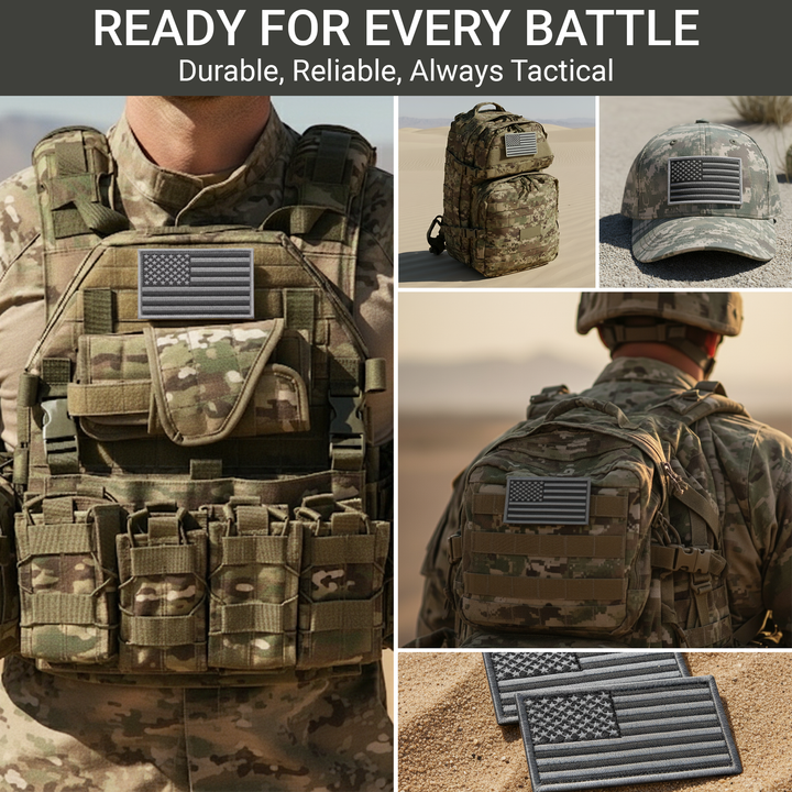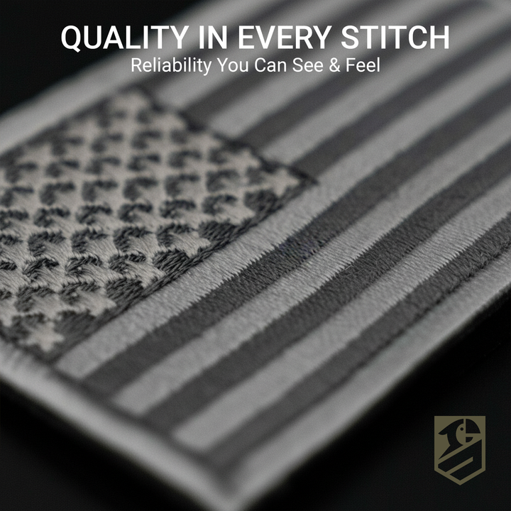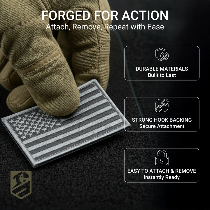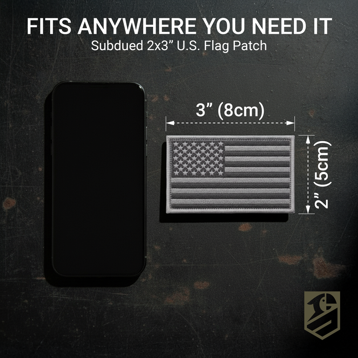 • Design: Subdued U.S. flag with light gray trim for a tactical, professional look