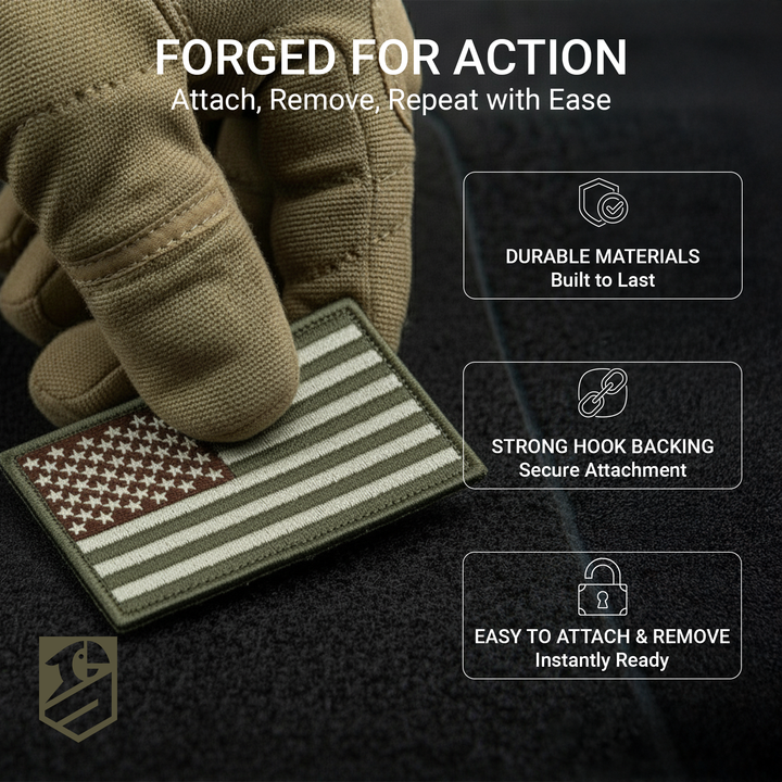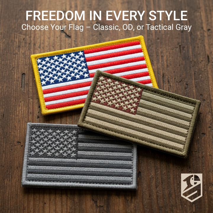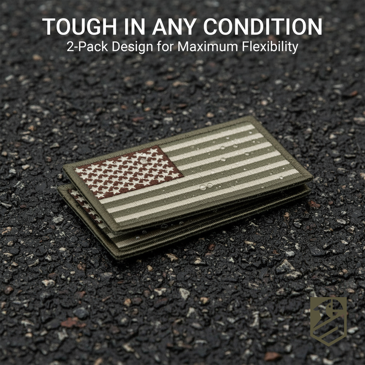 Design: Includes one regular and one reverse subdued U.S. flag patch