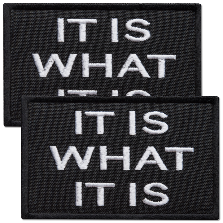 2-Pcs "It is What It is" Patches, Hook & Loop Full Embroidery Badge Patch Hook & Loop Black