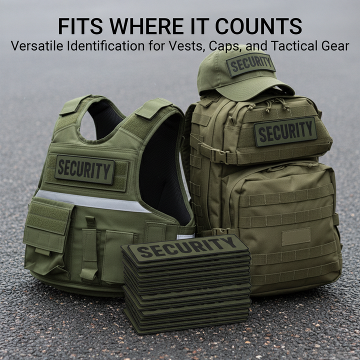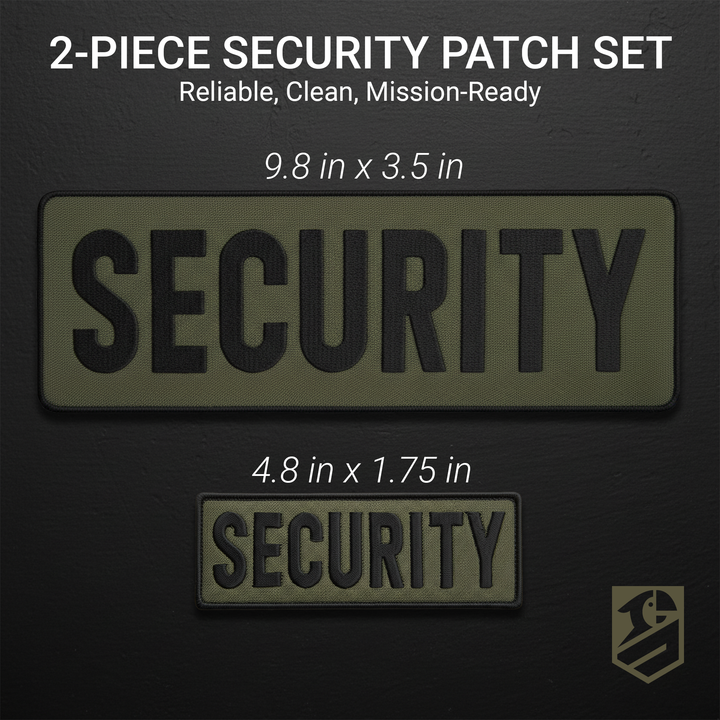 • Design: Olive drab background with bold black SECURITY embroidery for professional recognition