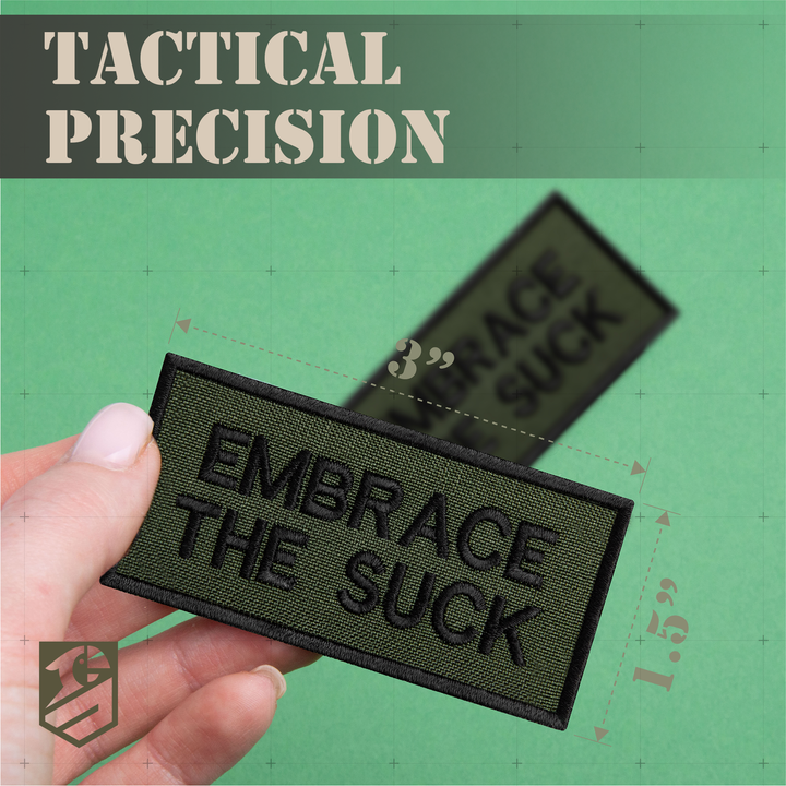 MOTIVATIONAL PATCH SET: Includes two Embrace The Suck patches, each measuring 1.5” x 3” (3.8 x 7.6 cm), perfect for tactical backpacks, military vests, or dog harnesses; a striking addition to any morale patch collection.