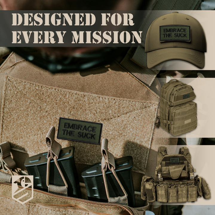 Embrace The Suck isn’t just a saying – it’s a mindset. Popularized in military circles, the phrase encourages resilience and mental fortitude in the face of adversity. This patch set is more than an accessory; it’s a reminder to push forward, stay strong, and face any challenge head-on.