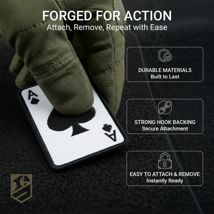 • Includes: 2 embroidered Ace of Spades tactical morale patches