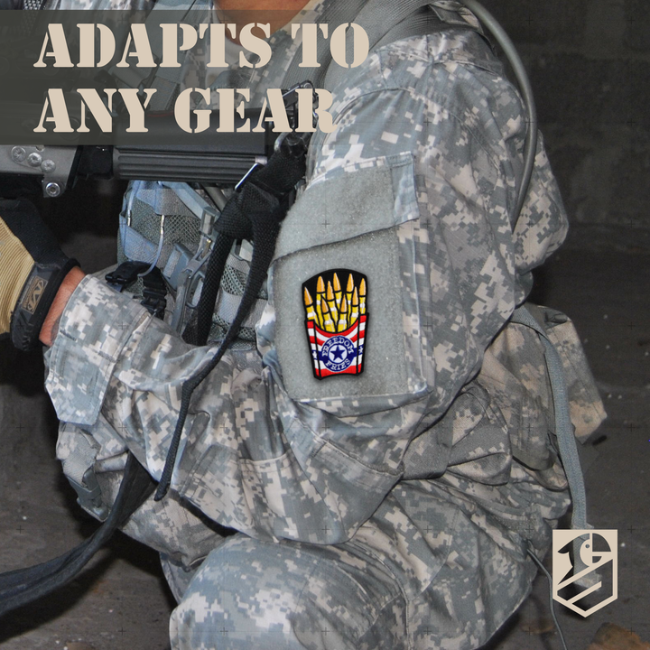 This patch draws on that historical moment with a clever twist: replacing the fries with bullets, framed by the American flag. It’s both a morale booster and a conversation starter for those who appreciate military culture, satire, and bold symbolism.