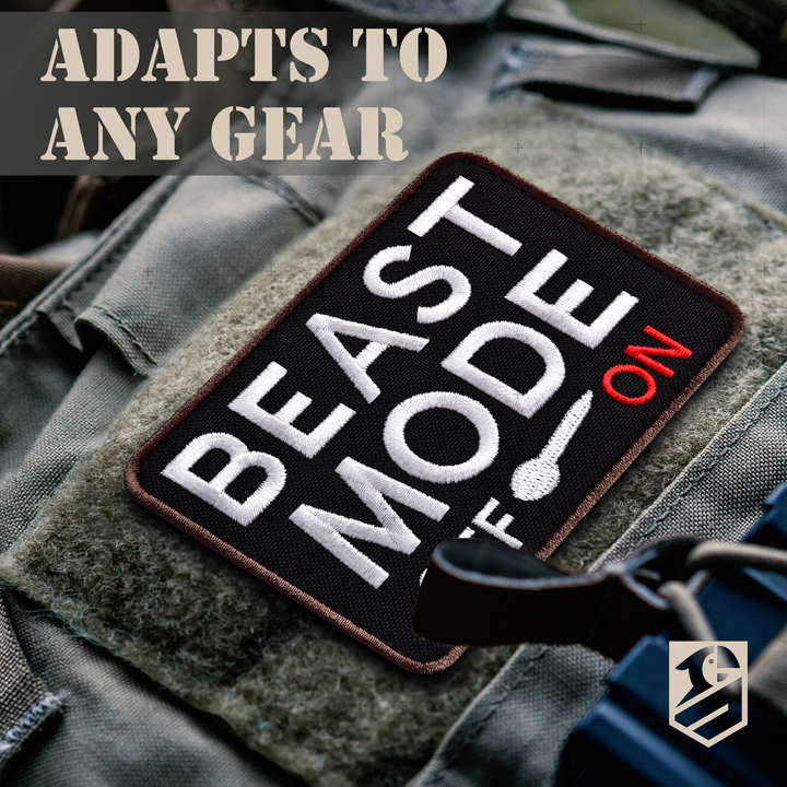 2Pcs Beast Mode ON Patch Set, 3.5x2.75 Inches (9x7 cm) Embroidered Funny Morale Patches with Hook Backing for Backpack, Vest, Gym Bag, Dog Harness