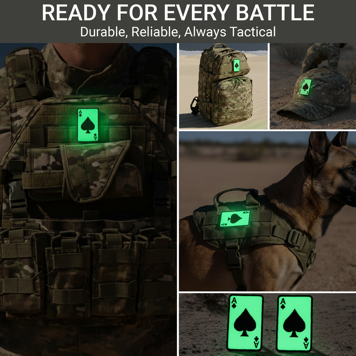 Light up your tactical gear with the Bluyellow Glow in the Dark Ace of Spades Patch Set — a 2-piece collection that merges military heritage with a modern glow effect. Inspired by the legendary “death card” carried by soldiers in Vietnam, these patches symbolize courage, defiance, and strength under pressure. The glow-in-the-dark embroidery makes them visible in low-light conditions, turning your vest, backpack, or helmet into a statement of grit and attitude.